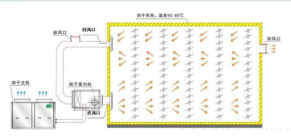 1.主機(jī)(加熱系統(tǒng)):利用輸入很少的電能吸收空氣中的免費(fèi)熱量,用來烘干物料。